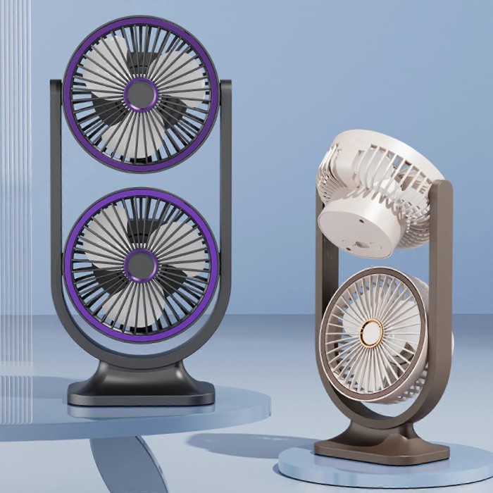 The Dual-Head Desktop Fan is a sophisticated cooling solution for modern workspaces. By utilizing two independent fan heads, it provides a wider “Cool Zone” compared to traditional single-head fans. Its lightweight build and USB-compatible power make it the perfect choice for professionals, students, and travelers.